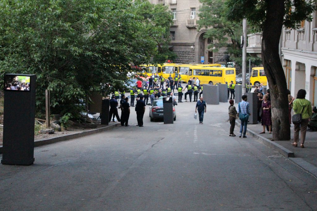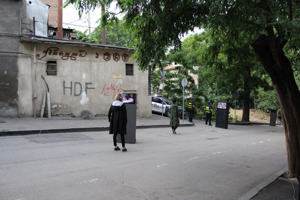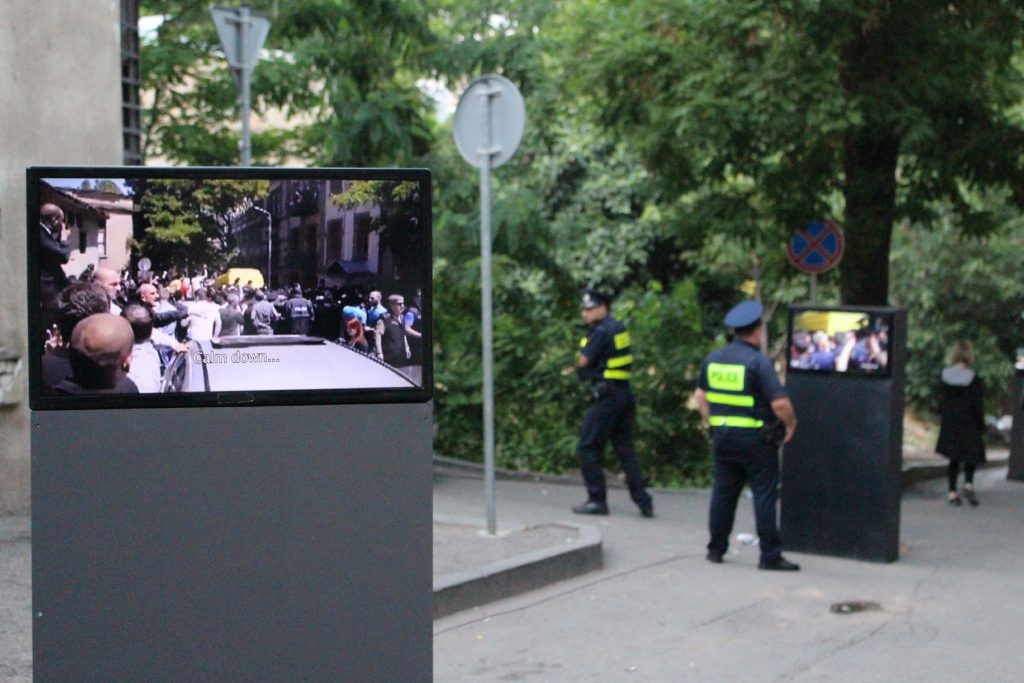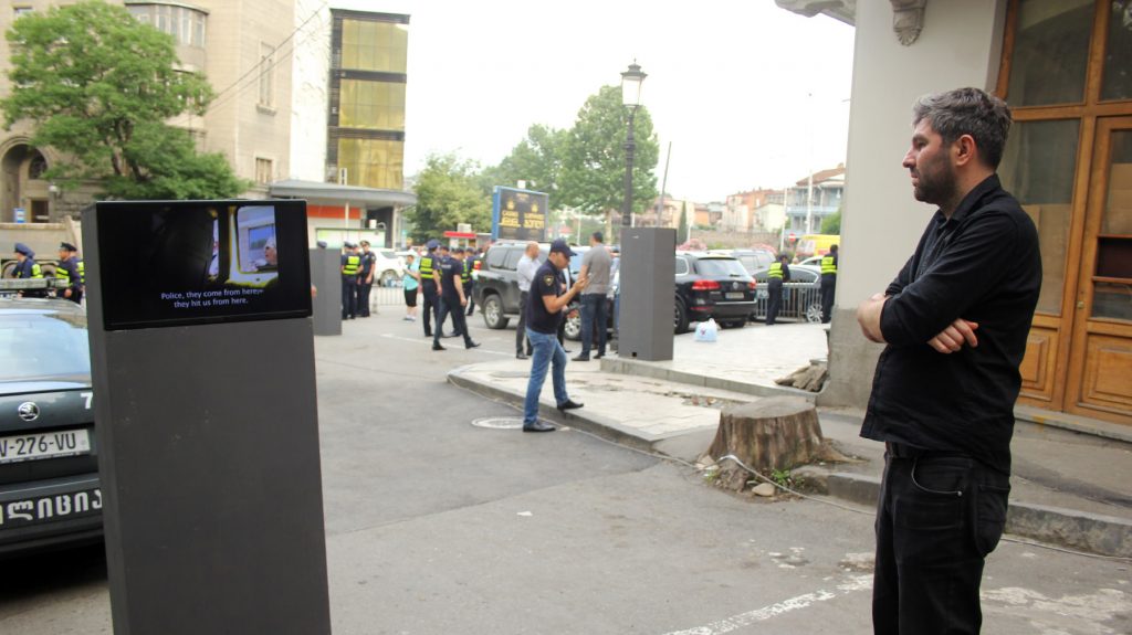15-არხიანი ვიდეოინსტალაცია ამ მოვლენის ნატო ვაჩნაძის ქუჩაზე განვითარებული ეპიზოდის დროსა და სივრცეში რეკონსტრუირებას ახდენს და მის ერთ ფაზას 15 სხვადასხვა კამერის პერსპექტივიდან წარმოადგენს, რომლებიც გადაღებულია ჟურნალისტების, თავდასხმელების და თავად მსხვერპლის მიერ.